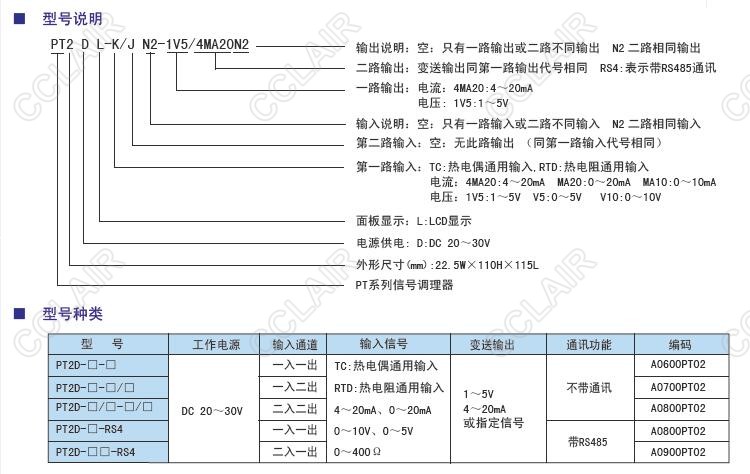 PT2D-TCN2,PT2D-RTDN2,PT2DL-K/JN2-1V5/4MA20N2,PT信號(hào)調(diào)理器