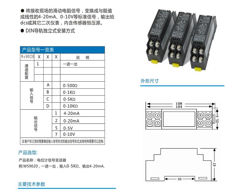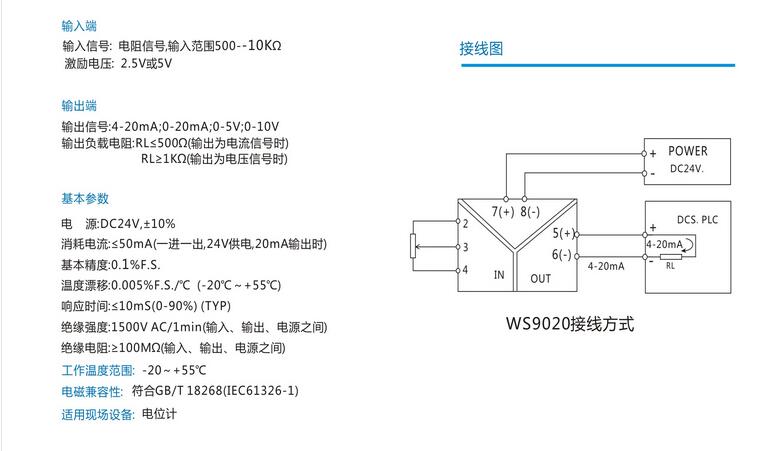 WS9020電位計變送器 電位計信號隔離器技術(shù)參數(shù)詳細(xì)介紹: