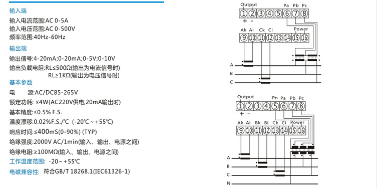 JD204P有功功率變送器輸出范圍:DC4-20mA、0-20mA、0-5V、0-10V等用戶(hù)需