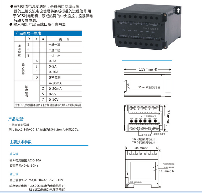 三相電壓變送器輸入范圍:AC0-100V、0-220V、0-380V、AC0-500V等用戶特定規(guī)格(備注:購(gòu)買(mǎi)時(shí)請(qǐng)注明電壓信號(hào)是三相三線還是三相四線)