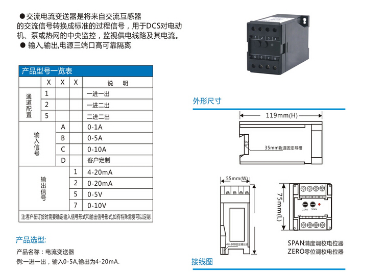 二相電流變送器電流變送器輔助電源:AC/DC220V 精度0.2級(jí)