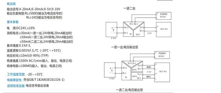 信號(hào)隔離器輸出范圍:4-20mA、0-10V、0-20mA等用戶需要的標(biāo)準(zhǔn)信號(hào)
