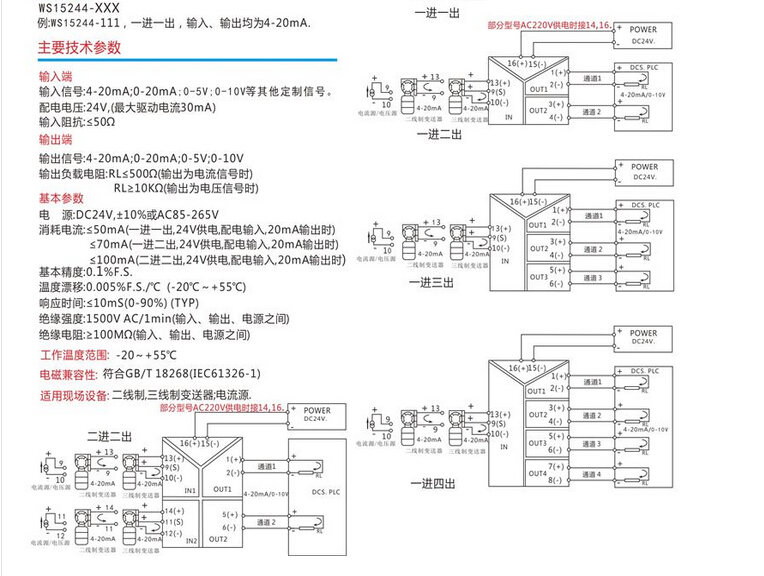 WS15244信號隔離器分配器,全隔離信號分配器 隔離柵,信號隔離器模塊,安全柵,電流轉(zhuǎn)換模塊。將輸入信號變換為兩路相互隔離的信號,低功耗,低熱量,低漂移,DIN T型導(dǎo)軌安裝