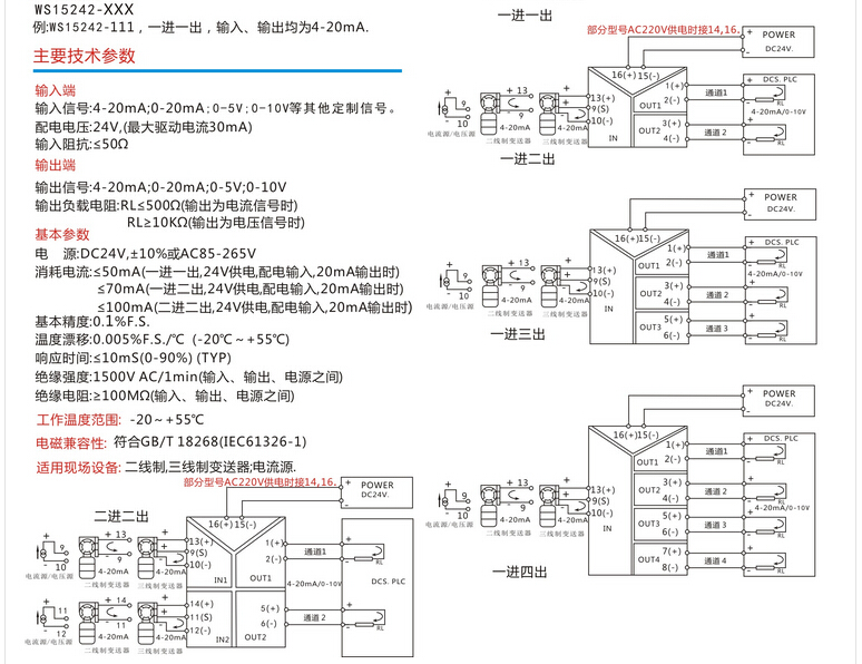 WS15242全隔離雙輸出信號(hào)分配器 隔離柵,信號(hào)隔離器模塊,安全柵,電流轉(zhuǎn)換模塊。將輸入信號(hào)變換為兩路相互隔離的信號(hào),低功耗,低熱量,低漂移,DIN T型導(dǎo)軌安裝