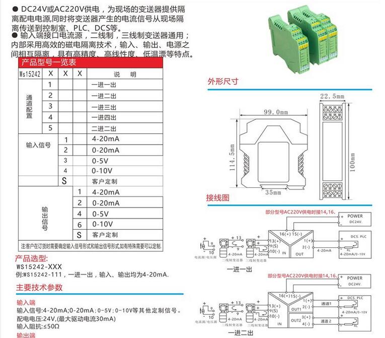 信號分配器 電源:DC24V AC220V電源 精度:0.1級%