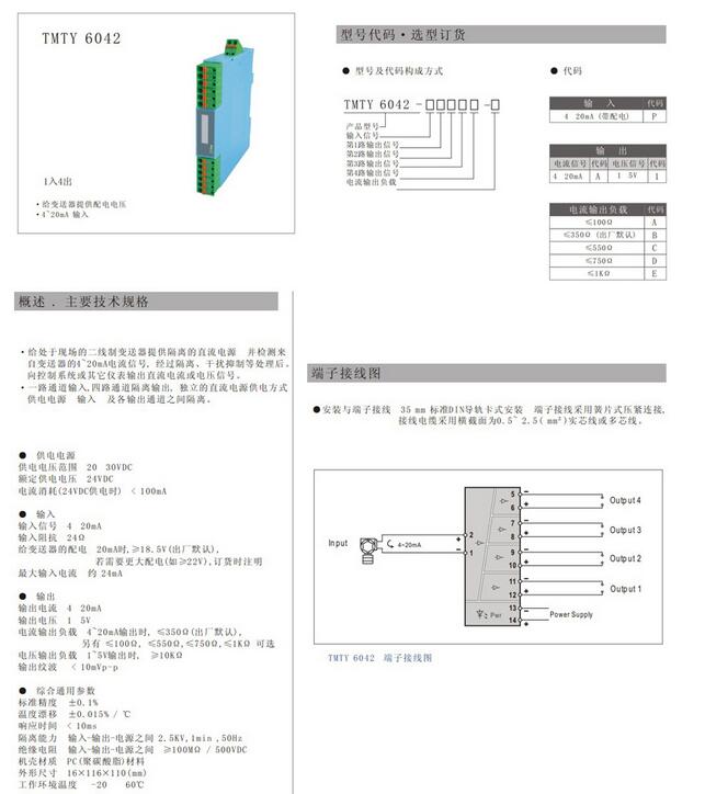 TMTY6042 1入4出 電流信號輸入配電隔離器