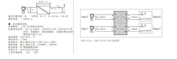 產(chǎn)品型號(hào): TMTY6711, TMTY6711C, TMTY6712, TMTY6712C,TMTY6711-PA,TMTY6711C-PA,TMTY6712-PA,TMTY6712C-PA, 輸入類(lèi)型:4-20mA 輸出類(lèi)型:4-20mA 二線制隔離配電器:TMTY6711/6711C 1入1出;TMTY6712/6712C 2入2出