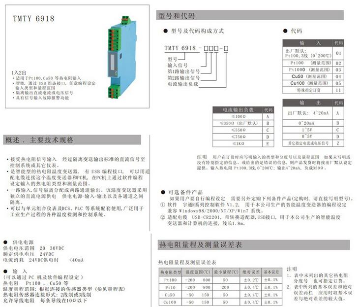 TMTY6918 TMTY-6918-01A,TMTY-6918-01B,智能型熱電阻輸入隔離變送器