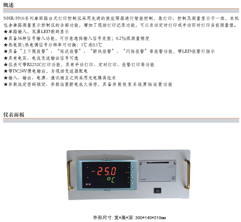 NHR-5910,單回路臺式打印控制儀