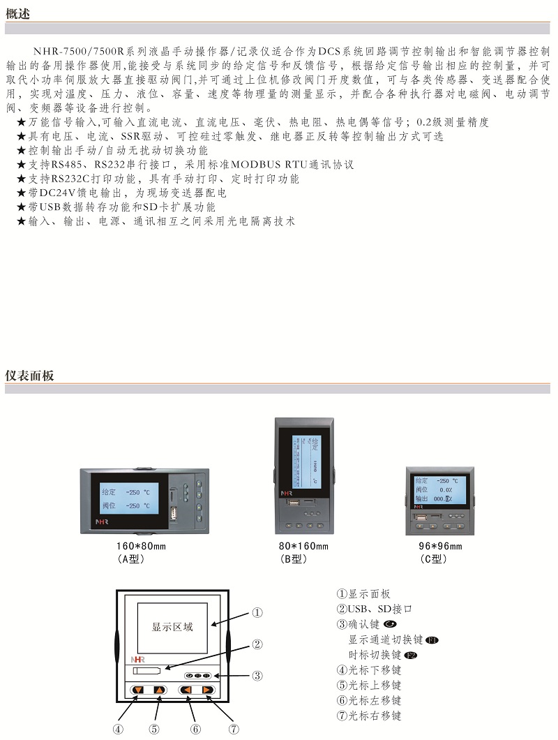 NHR-7500/7500R,液晶手動(dòng)操作器/手動(dòng)操作記錄儀