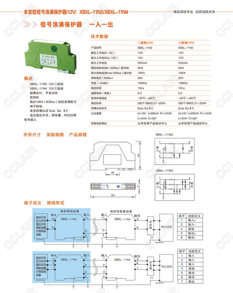 XBXL-11N3,XBXL-11N4,本安型信號浪涌保護器(12V)(一入一出)
