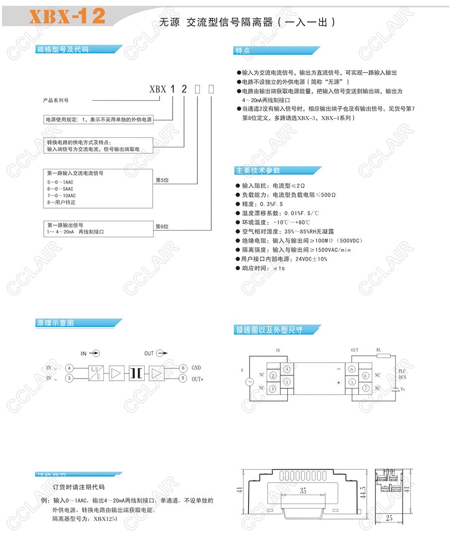 XBX-12,XBX12-51,XBX12-61,XBX12-71,XBX12-81,無源交流型信號隔離器(一入一出)