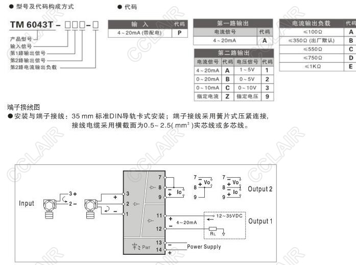4~20mA輸入,第一路輸出 4~20mA ,支持輸出回路供電。