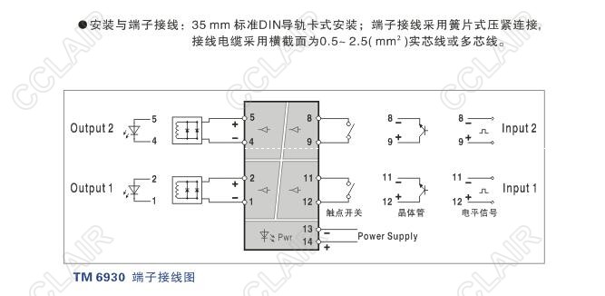 TM6930開關(guān)量輸出隔離器端子接線圖