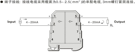 是一種4~20mA電流信號輸入, 4~20mA電流信號輸出的無源隔離器。使用時無需外接供電電源,其工作所需的能量來源于表示信號的電流。無源隔離器在實際應用中能有效解決信號互連可能出現(xiàn)的問題,同時能有效抑制信號傳輸過程中可能的干擾。