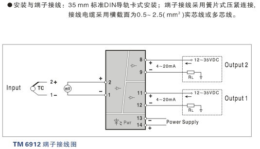TM6912 熱電偶輸入溫度變送器 一入二出特性