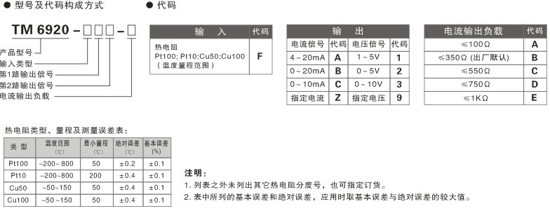 TM6920,TM6920-F-A1,TM6920-F-B2,TM6920-F-C3,TM6920-F-Z9,熱電阻輸入溫度變送器 一入二出