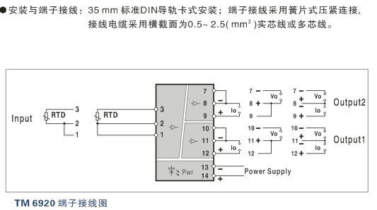 TM6920 熱電阻輸入溫度變送器 一入二出特性