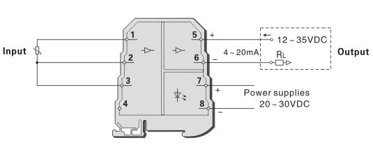 用于Pt100,Cu50 等熱電阻輸入, 經(jīng)隔離變送輸出標準的直流電流信號4~20mA。