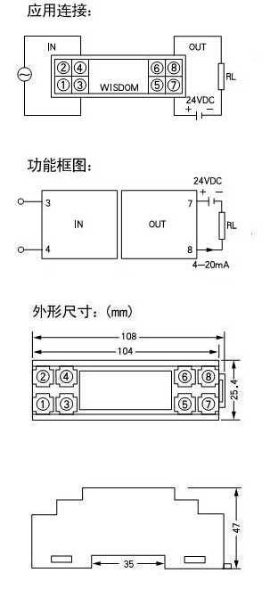 產(chǎn)品型號(hào):WS2026,二線制隔離交流電流信號(hào)變換端子