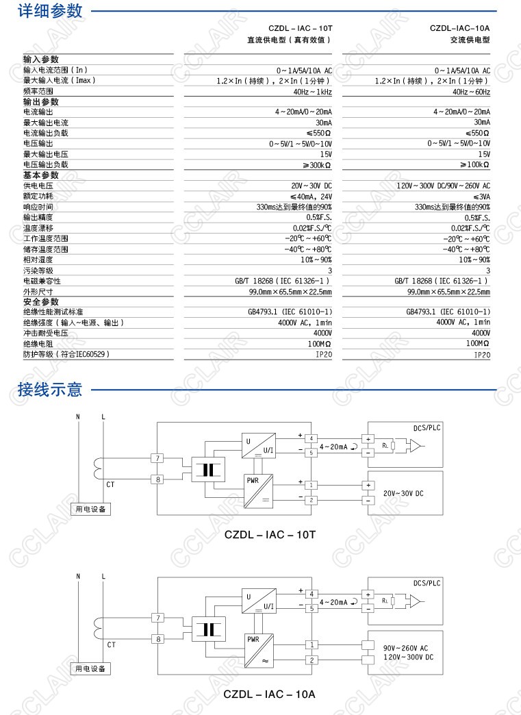 CZDL-IAC-10T 交流電流輸入電量變送器