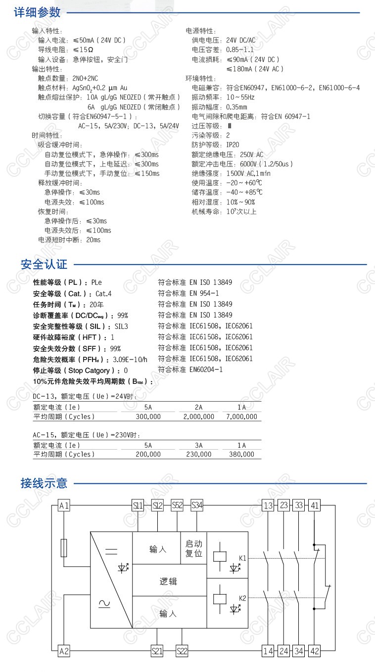 CZSR8001-2A2B是適用于急停按鈕、安全門控開(kāi)關(guān)輸入,具有2路NO(常開(kāi))安全輸出觸點(diǎn)和2路NC(常閉)輔助輸出觸點(diǎn)的安全繼電器。它可選擇單雙通道操作,手動(dòng)或自動(dòng)復(fù)位,并具有通道間短路監(jiān)控功能。