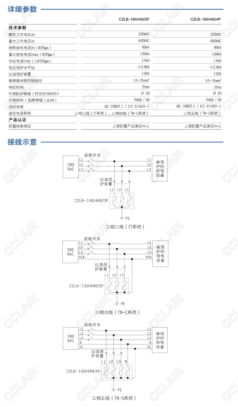 CZLB-160/440/3P,CZLB-160/440/4P 交流電源型SPD(160kA)