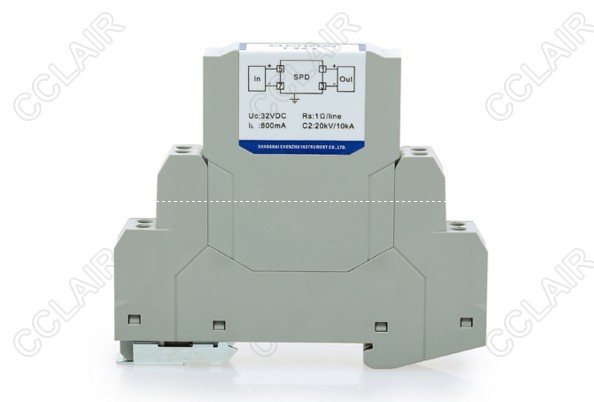 24V信號SPD,四線制,適用于線對地隔離電壓>500V信號回路,最大放電電流Imax(8/20us):20kA/線,12.5mm超薄,通過DIN35金屬導(dǎo)軌接地。