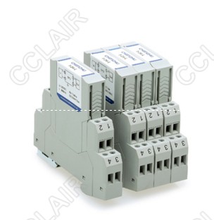 24V信號SPD,三線制,適用于線對地隔離電壓>500V信號回路,最大放電電流Imax(8/20us):20kA/線,12.5mm超薄,通過DIN35金屬導(dǎo)軌接地。
