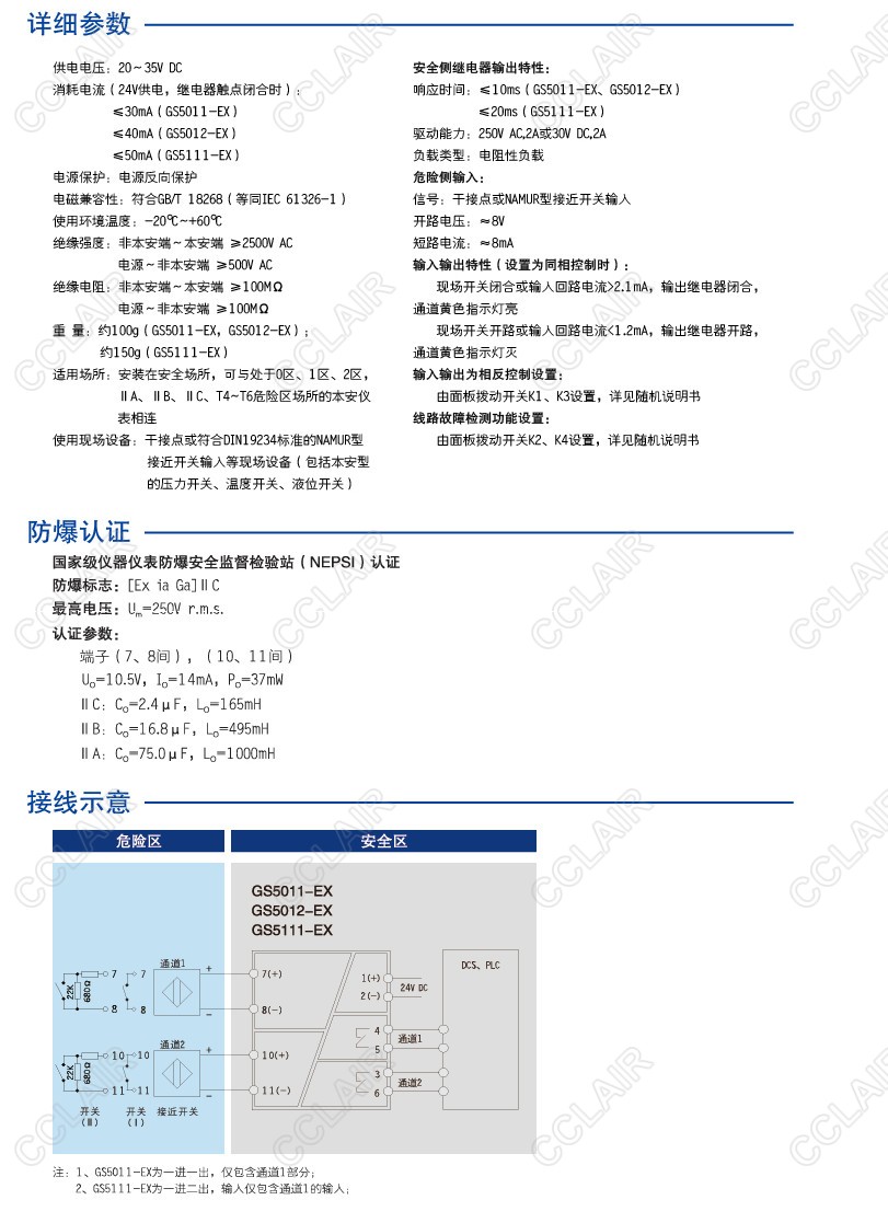 開關(guān)量輸入,繼電器輸出隔離柵,接收來自危險(xiǎn)區(qū)的干接點(diǎn)開關(guān)或NAMUR接近開關(guān)輸入,通過安全柵隔離傳輸?shù)桨踩珎?cè)繼電器輸出,各通道可獨(dú)立設(shè)置為輸入和輸出同相或反相控制,同時(shí)有輸入線路故障檢測報(bào)警指示功能。該產(chǎn)品需要獨(dú)立供電,電源、輸入和輸出三隔離。