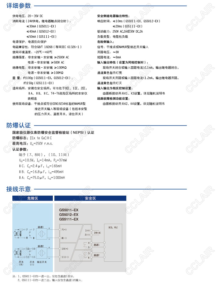 GS5011-EX 一進一出 開關(guān)量輸入,繼電器輸出隔離式安全柵