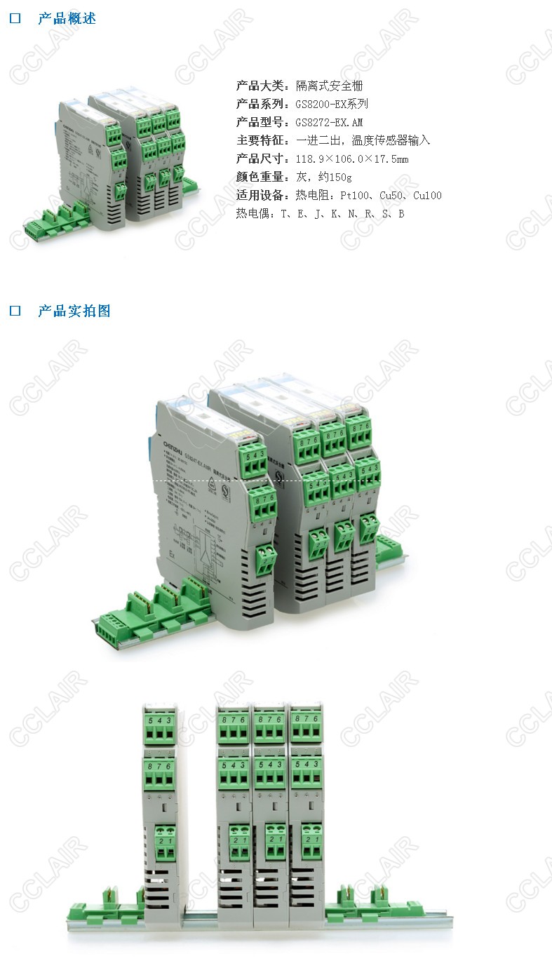 溫度傳感器輸入,4~20mA、RS485輸出隔離柵。將危險(xiǎn)側(cè)的熱電阻、熱電偶信號(hào)轉(zhuǎn)換成4~20mA標(biāo)準(zhǔn)電流信號(hào)傳輸?shù)桨踩珎?cè)輸出。具有RS485通訊功能,可以通過MODBUS-RTU協(xié)議組成網(wǎng)絡(luò)。通訊和電源可選擇導(dǎo)軌或端子連接方式。