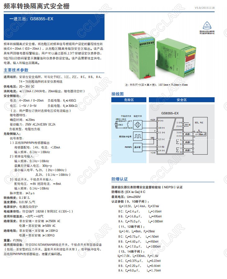 GS8355-EX 一進(jìn)三出 頻率轉(zhuǎn)換隔離式安全柵