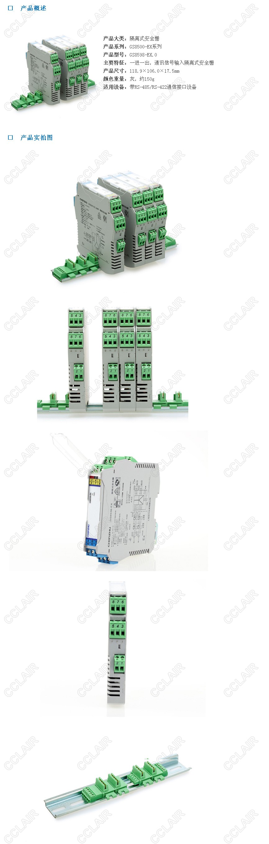 GS8598-EX.0 一進一出 RS-485全雙工輸入RS-485全雙工輸出隔離式安全柵