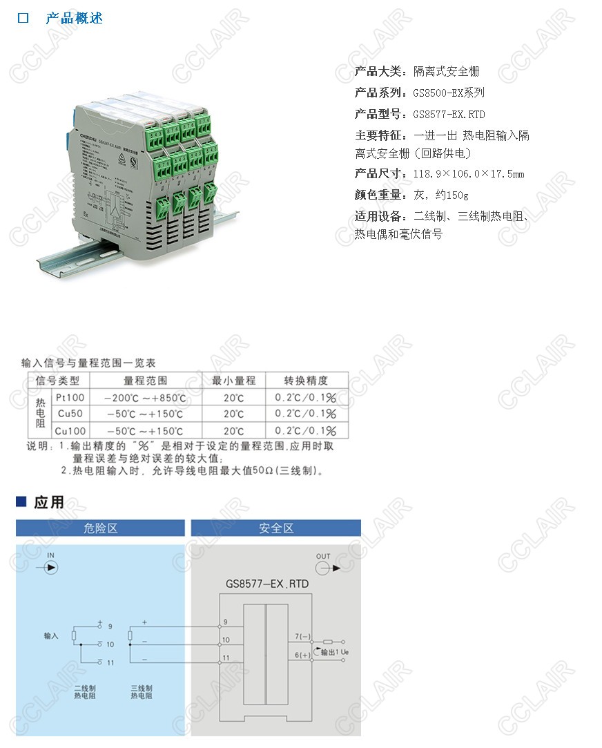 回路供電型隔離式安全柵,將現(xiàn)場的熱電阻、熱電偶、毫伏信號、電位器信號轉(zhuǎn)換成0/4~20mA的電流信號或0~5V電壓信號,從危險(xiǎn)區(qū)隔離傳送到安全區(qū)。它具有冷端補(bǔ)償功能,是智能型的,可通過計(jì)算機(jī)對熱電阻、熱電偶、電位器的分度號、量程范圍等進(jìn)行組態(tài)。