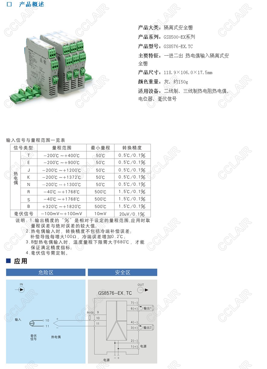 隔離式安全柵,將現(xiàn)場的熱電阻、熱電偶、毫伏信號、電位器信號轉(zhuǎn)換成0/4~20mA的電流信號或