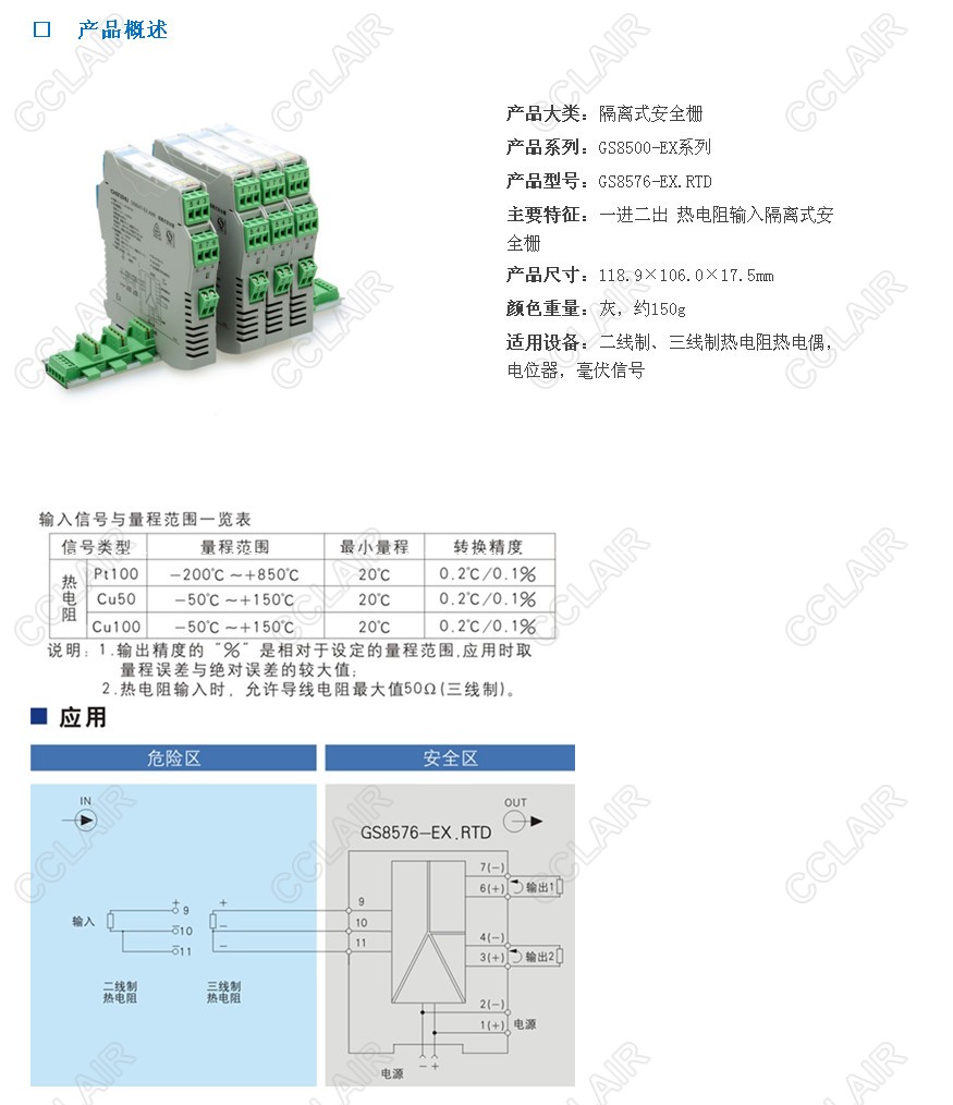 隔離式安全柵,將現(xiàn)場的熱電阻、熱電偶、毫伏信號、電位器信號轉(zhuǎn)換成0/4~20mA的電流信號或0~5V電壓信號,從危險(xiǎn)區(qū)隔離傳送到安全區(qū)。它具有冷端補(bǔ)償功能,是智能型的,可通過計(jì)算機(jī)對熱電阻、熱電偶、電位器的分度號、量程范圍等進(jìn)行組態(tài)。該產(chǎn)品需要獨(dú)立供電,電源、輸入和輸出的三隔離。