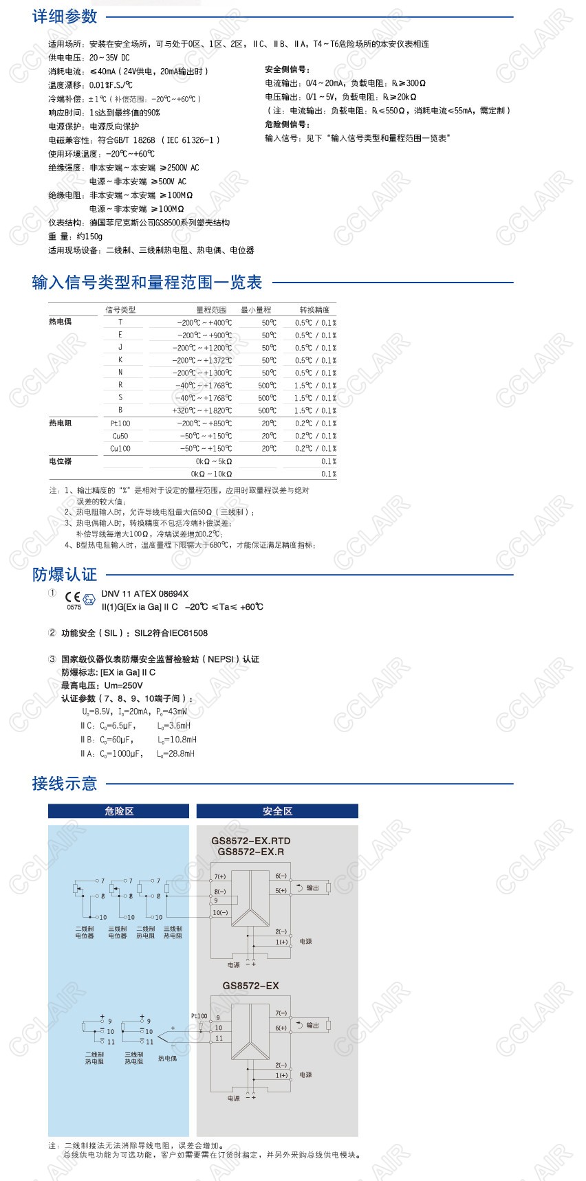 GS8572-EX 一進(jìn)一出 熱電阻、熱電偶輸入隔離式安全柵