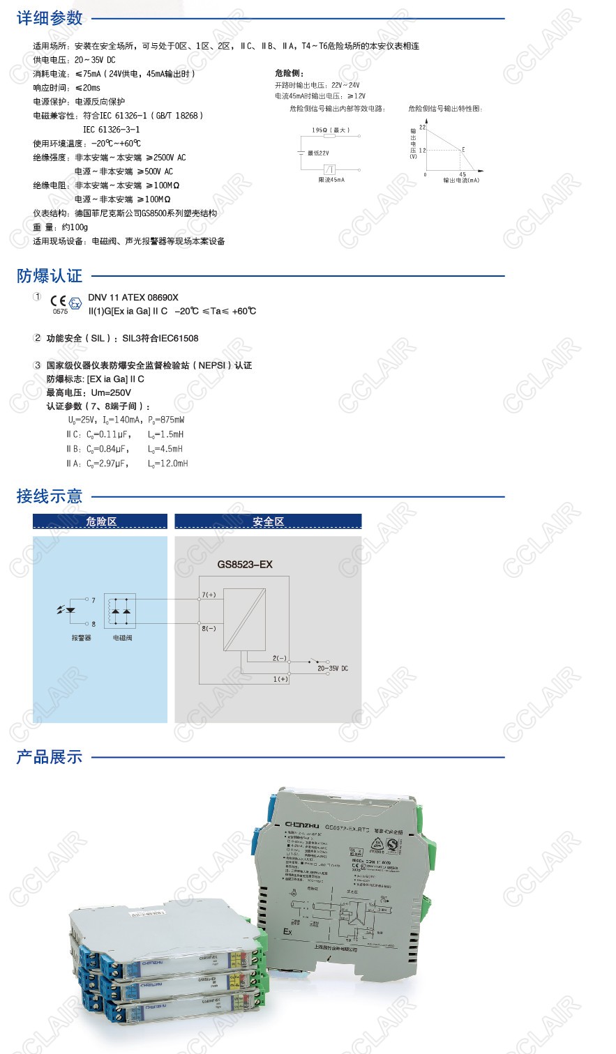 電磁閥、聲光報(bào)警器等一些小功率本安設(shè)備。輸入輸出隔離,允許控制開關(guān)直接連到24V DC供電