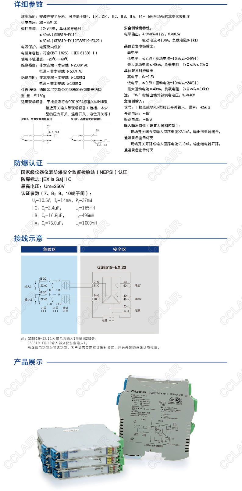 GS8519-EX.11 一進一出 開關量輸入,晶體管輸出隔離式安全柵