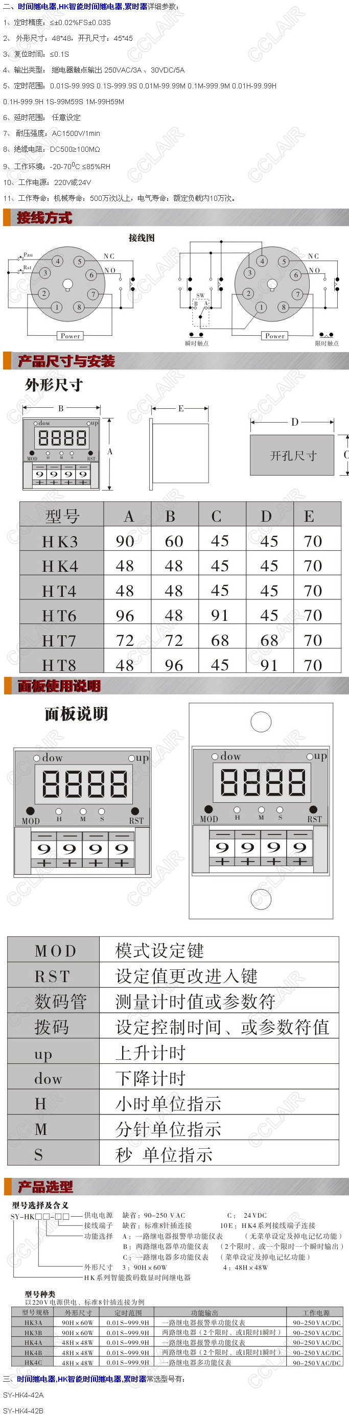SY-HK4-42A,SY-HK4-42B,SY-HK4-42C,SY-HK3A,SY-HK3B,SY-HK4A,HK智能時(shí)間繼電器