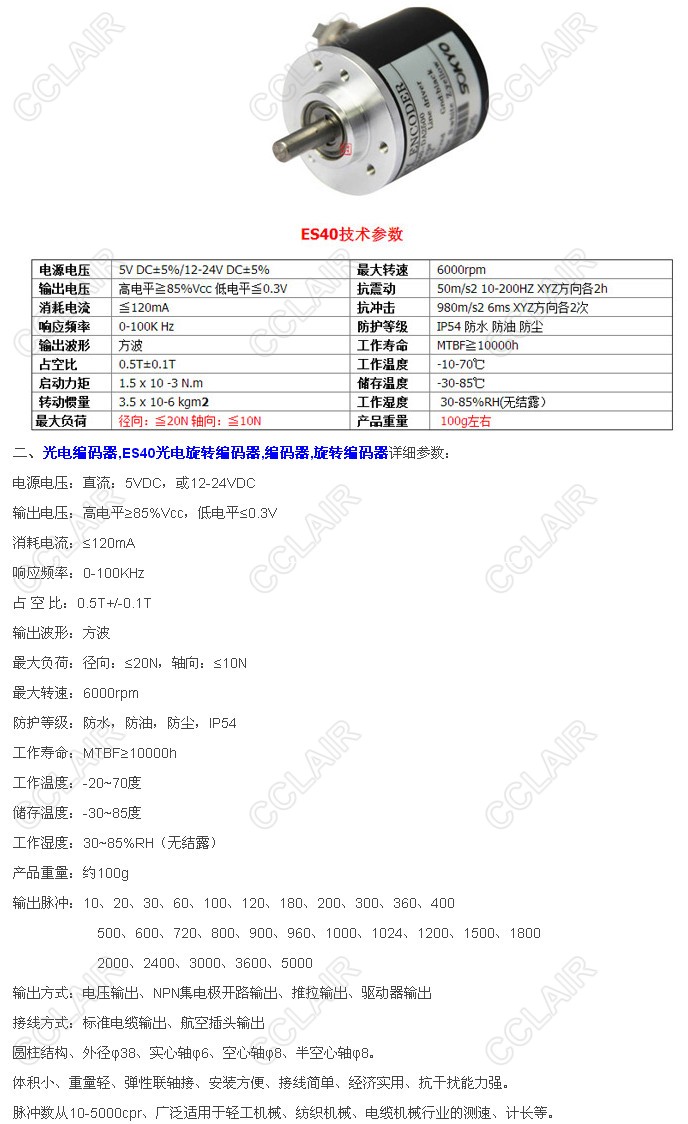 SY-ES40-RB30,SY-ES40-RB100,SY-ES40-RB360,SY-ES40-RB600,ES40光電旋轉(zhuǎn)編碼器