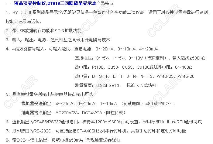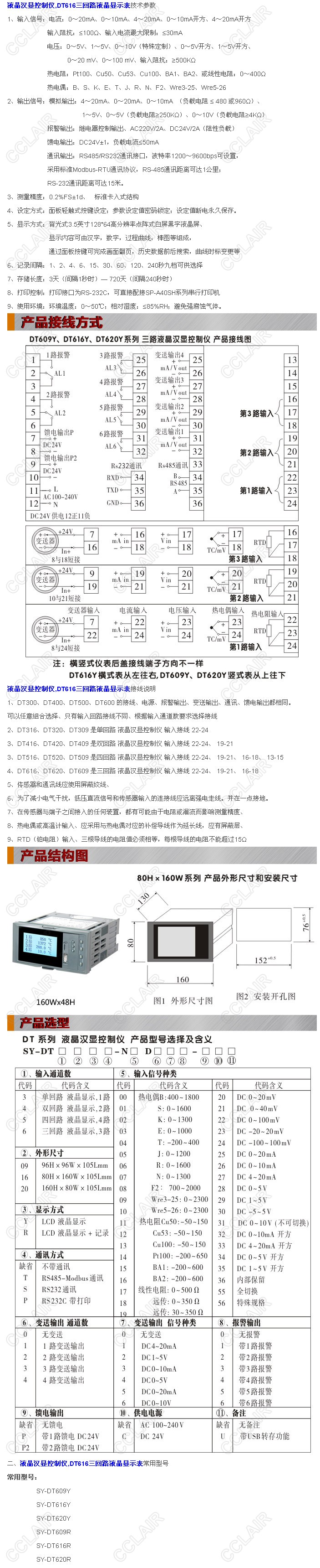 SY-DT616Y,SY-DT616R,SY-DT616YT,SY-DT616RT,SY-DT616YS,DT616三回路液晶顯示控制儀