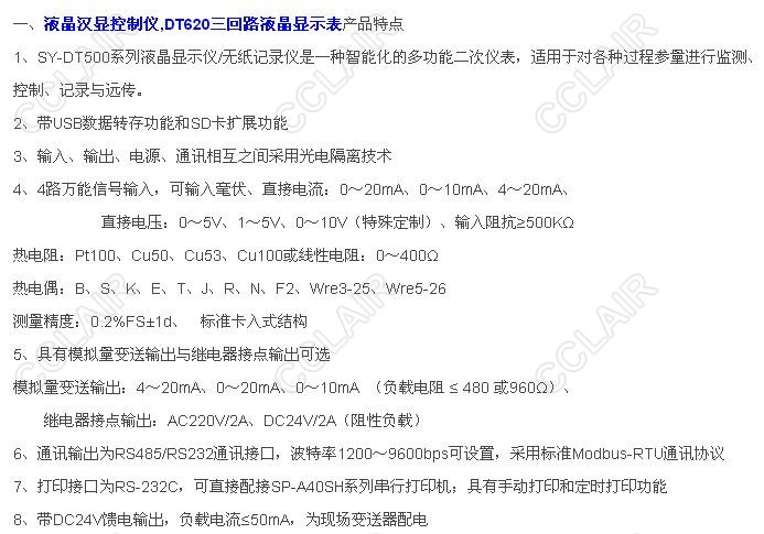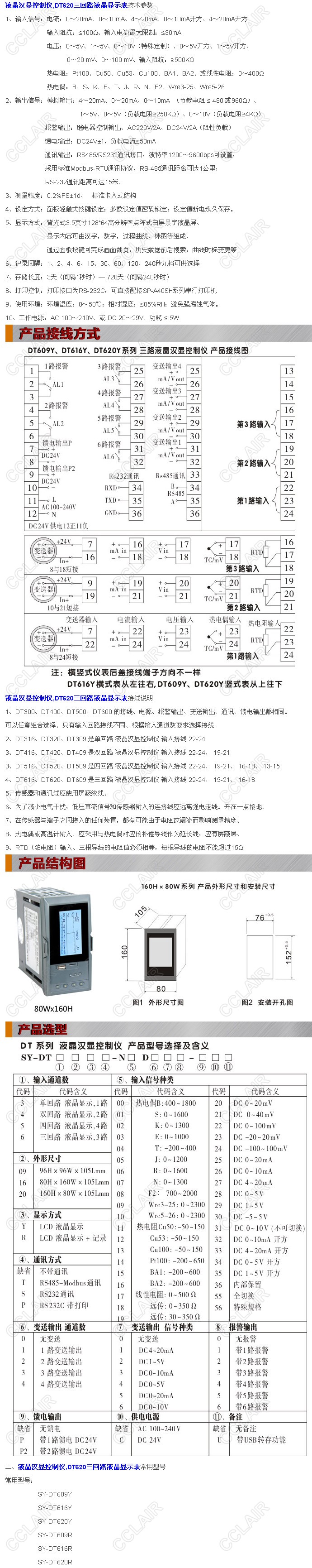 SY-DT620Y,SY-DT620R,SY-DT620YT,SY-DT620RT,SY-DT620YS,DT620三回路液晶顯示控制儀