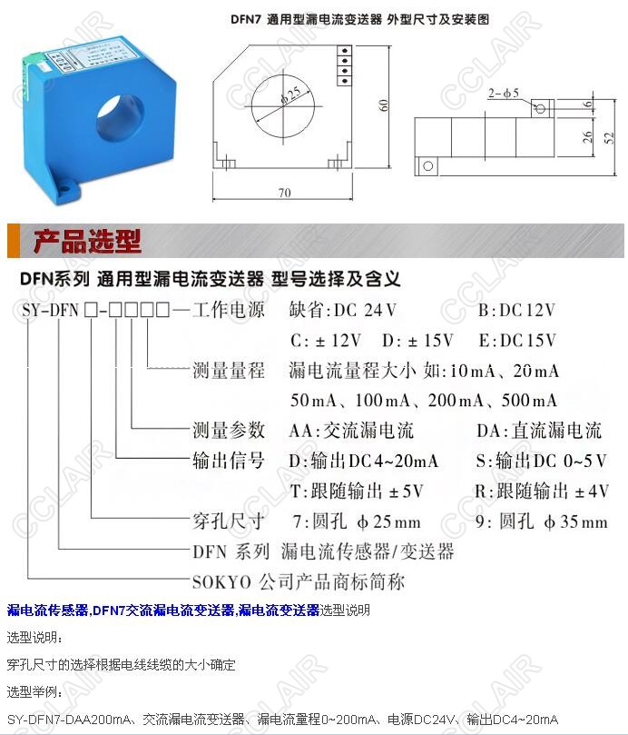 SY-DFN7-DAA500,SY-DFN7-DAA500B,SY-DFN7-DAA500C,SY-DFN7-DAA500D,DFN7交流漏電流變送器