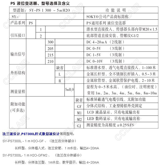 SY-PS7300L-1mH2O-GF,SY-PS7205L-1mH2O-GF,PS7300L-1mH2O-GF