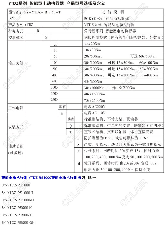 SY-YTDZ-RS1000,SY-YTDZ-RS1000-T,SY-YTDZ-RS1000-Q,YTDZ-RS1000智能電動執(zhí)行機(jī)構(gòu)