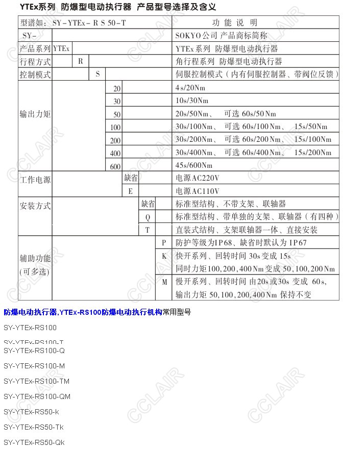 SY-YTEX-RS100,SY-YTEX-RS100-T,SY-YTEX-RS100-Q,YTEX-RS100防爆電動(dòng)執(zhí)行機(jī)構(gòu)