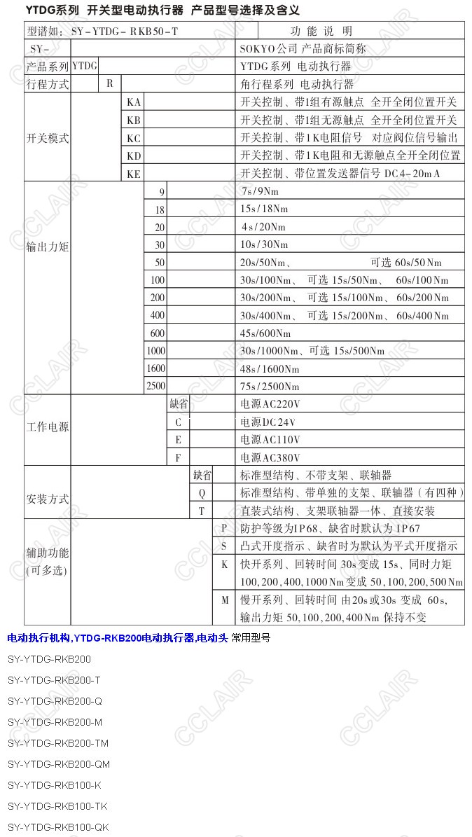 SY-YTDG-RKB200,SY-YTDG-RKB200-T,SY-YTDG-RKB200-Q,YTDG-RKB200電動執(zhí)行器電動頭