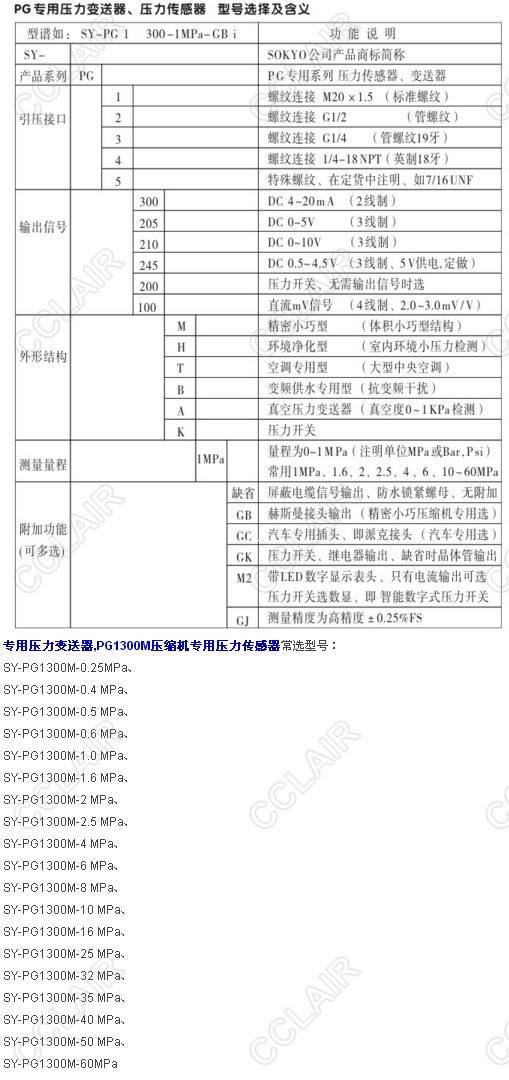 SY-PG1300M-0.25MPa,SY-PG1300M-0.4MPa,SY-PG1300M-0.5MPa,PG1300M壓縮機專用壓力傳感器